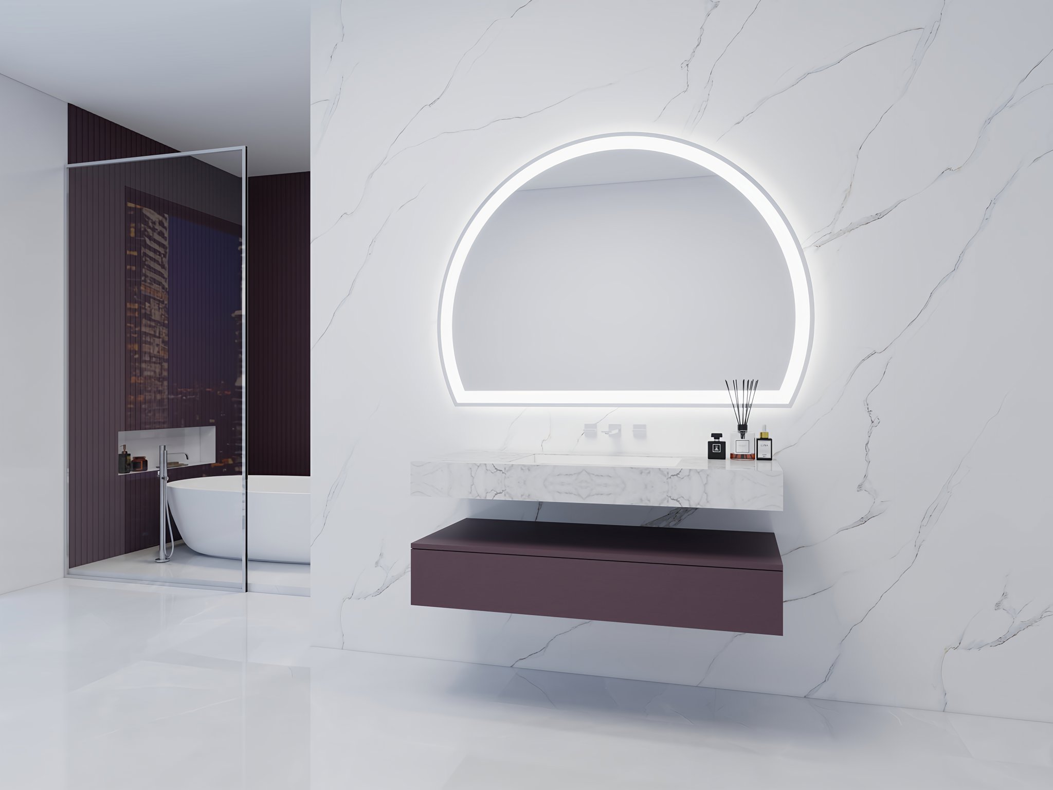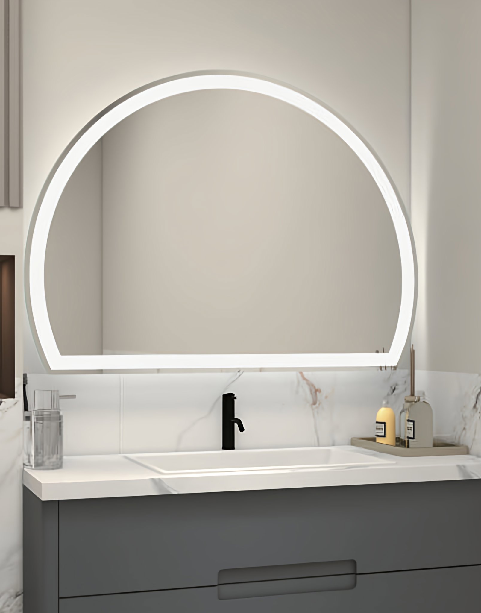 现代风格半圆LED浴室镜